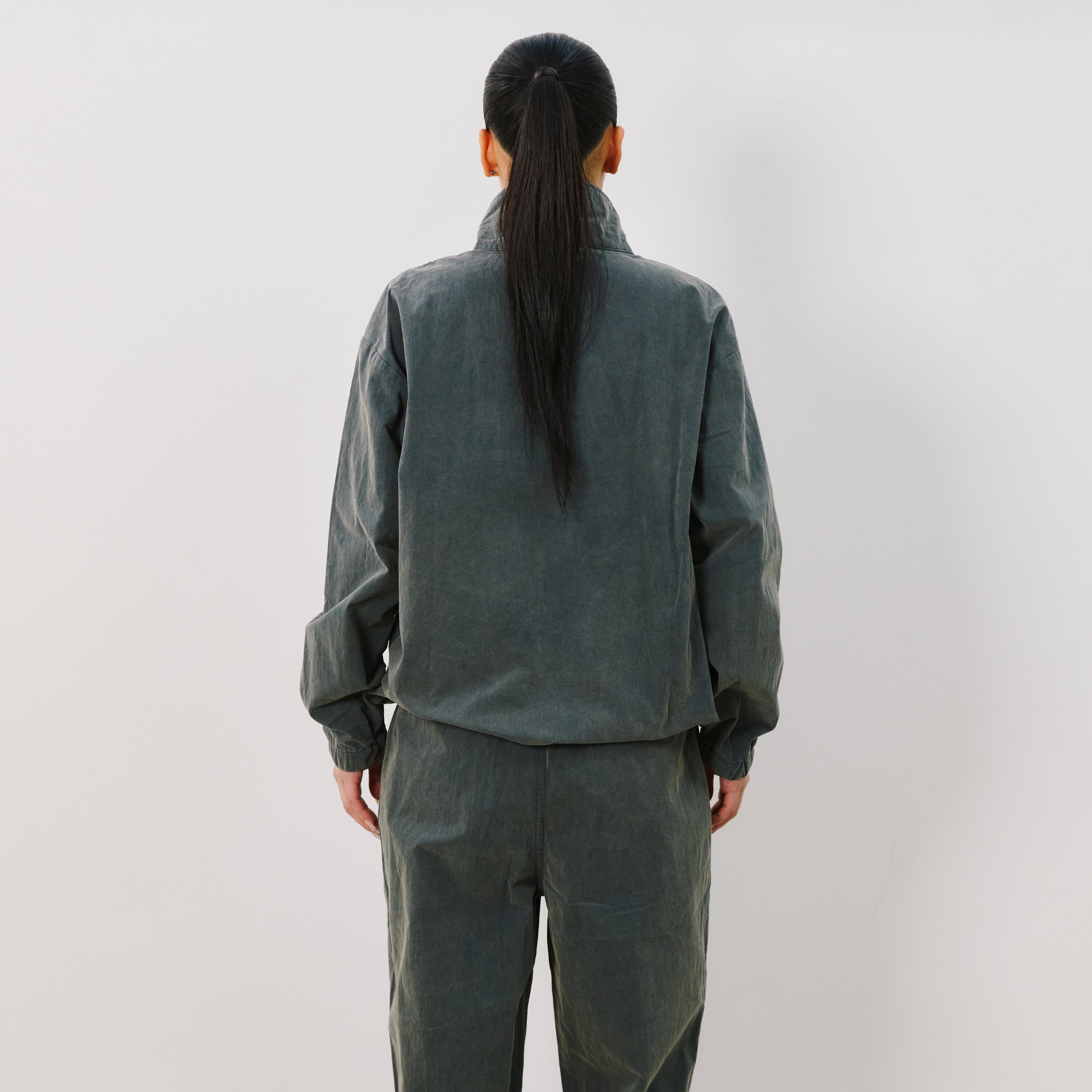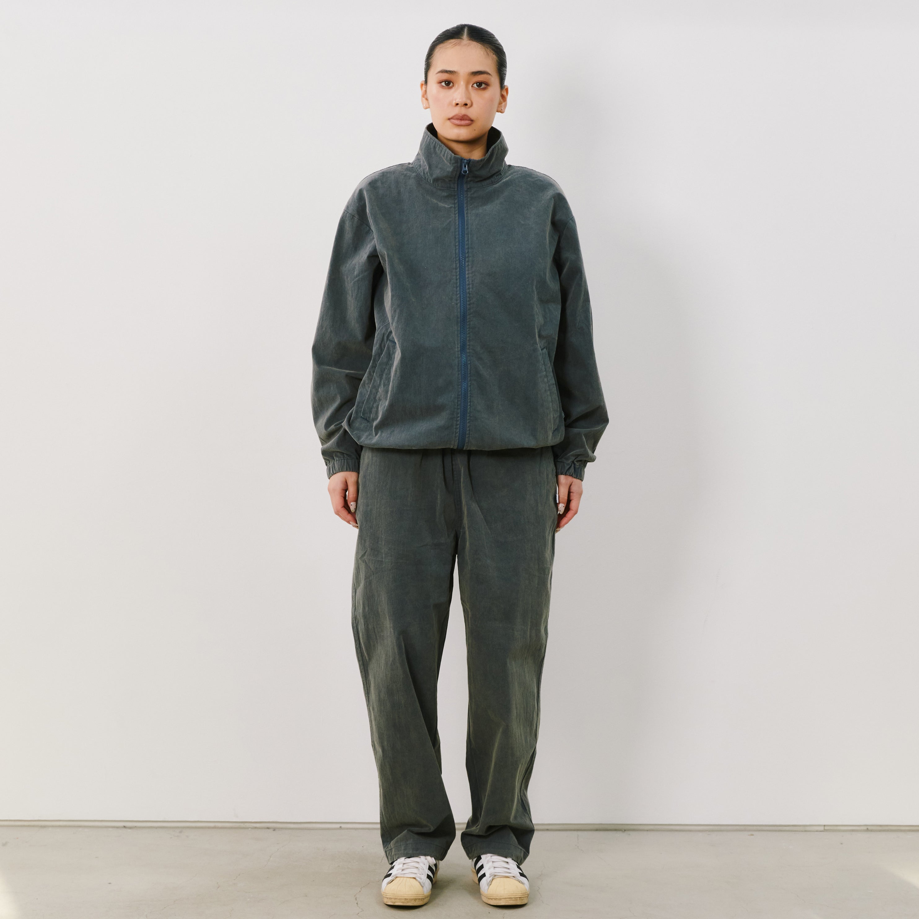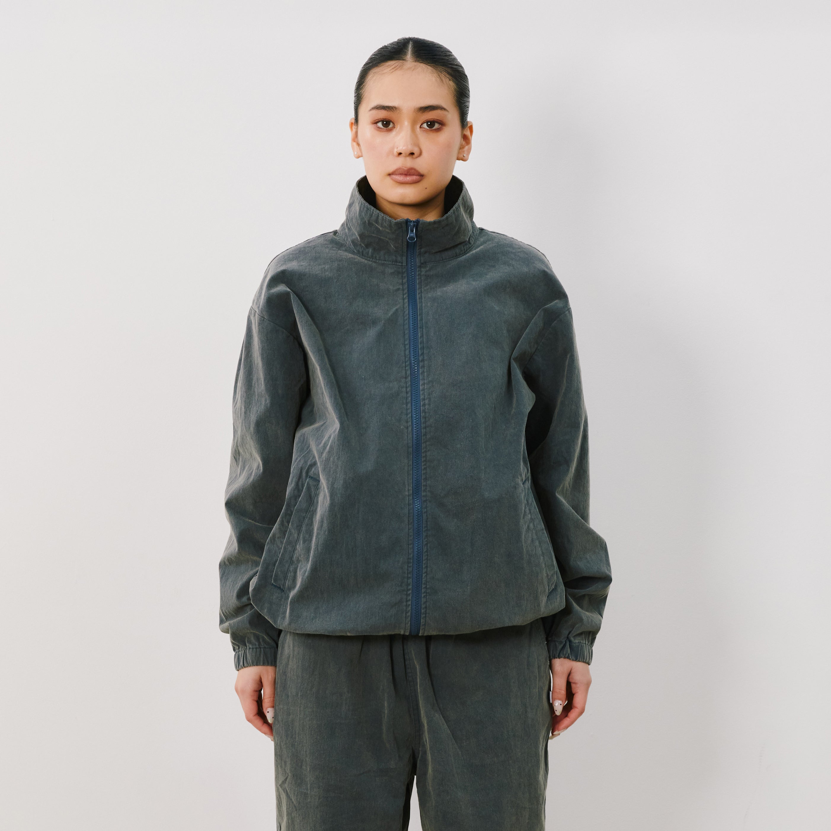 コットンナイロンウェザーを使用したトラックジャケット。