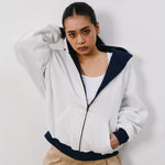 リバーシブル仕様のジップアップフーディー。