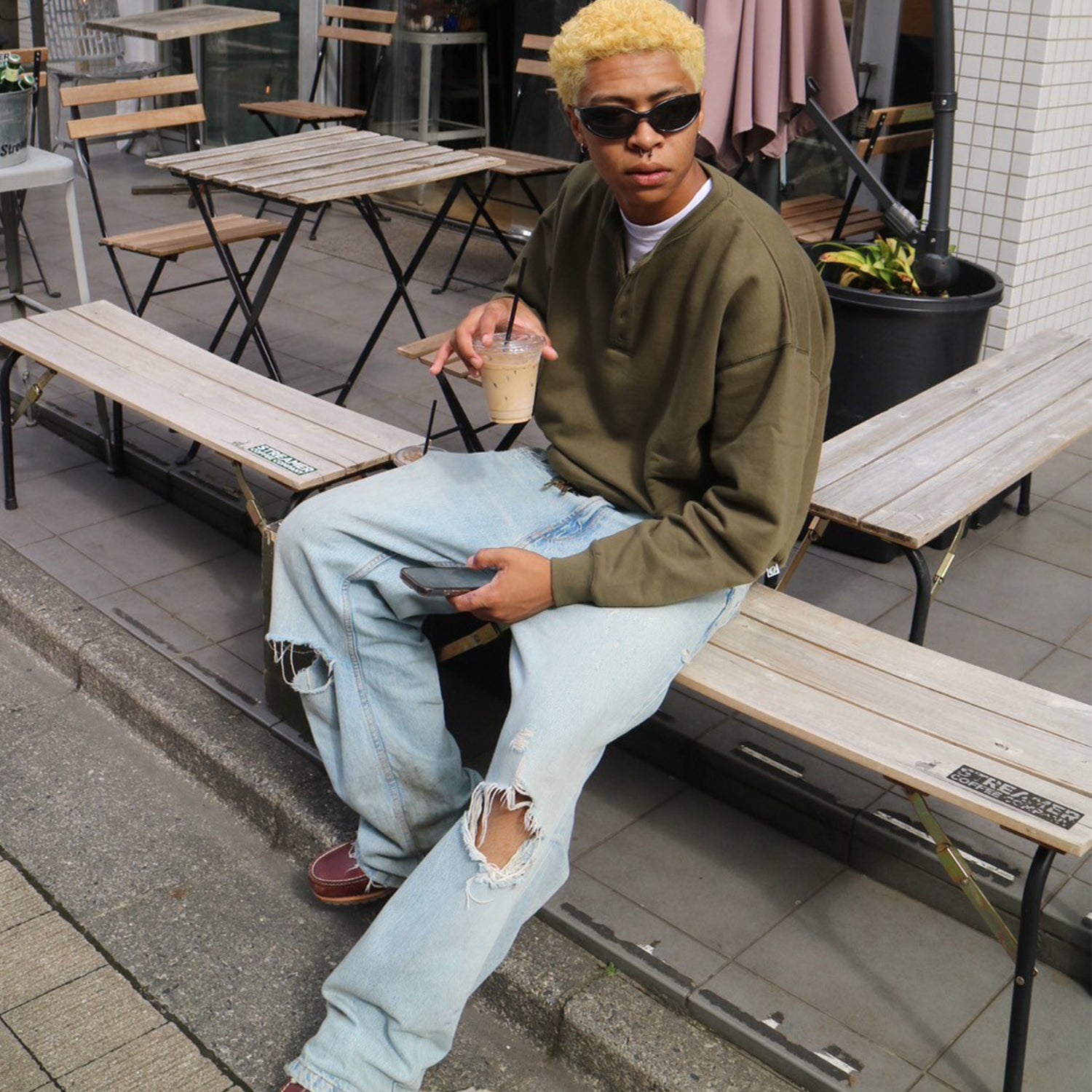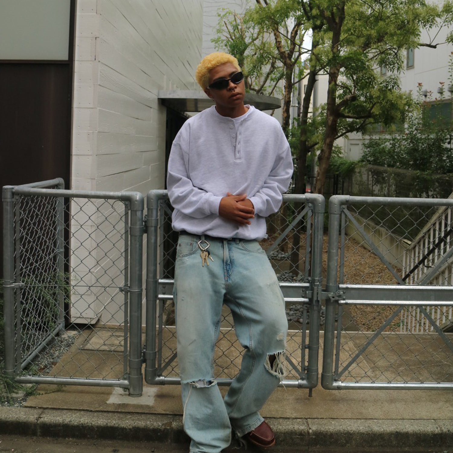 ボディと同色なボタンを配置。ヘンリーネックだからこそ首元からみえる差し色を堪能いただけます。脱ぎ着しやすいアイテムなので、気温に変動がある季節は肩に巻いたり、レイヤードしたりとその時の気分でスタイリングをお楽しめいただけます。                   綿とポリエステルの混紡を使用した生地で12ozの程よい厚みと弾力があり、裏地は柔らかい起毛で暖かい仕様です。