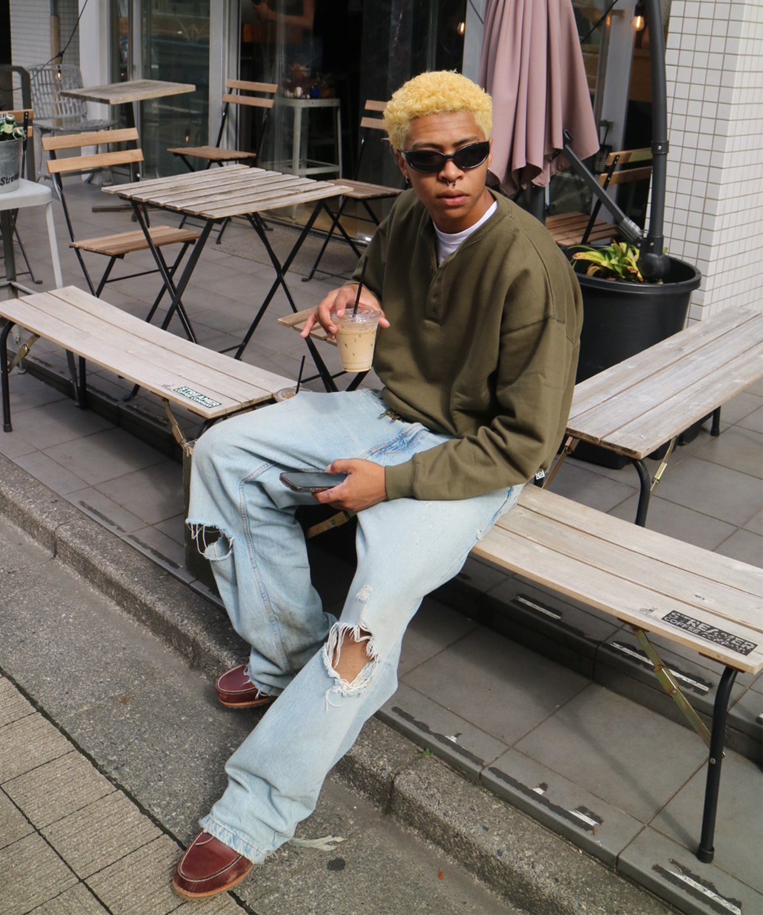 Fleece Henry Neck Sweat【Olive/SIZE L】
